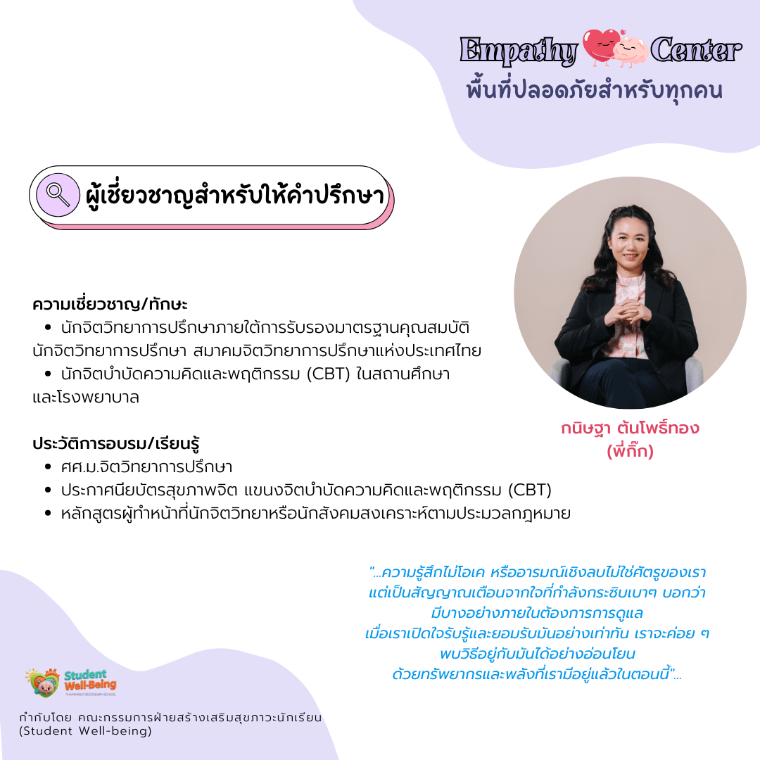 Empathy Center (พื้นที่ปลอดภัยสำหรับผู้ปกครอง นักเรียน และบุคลากร)