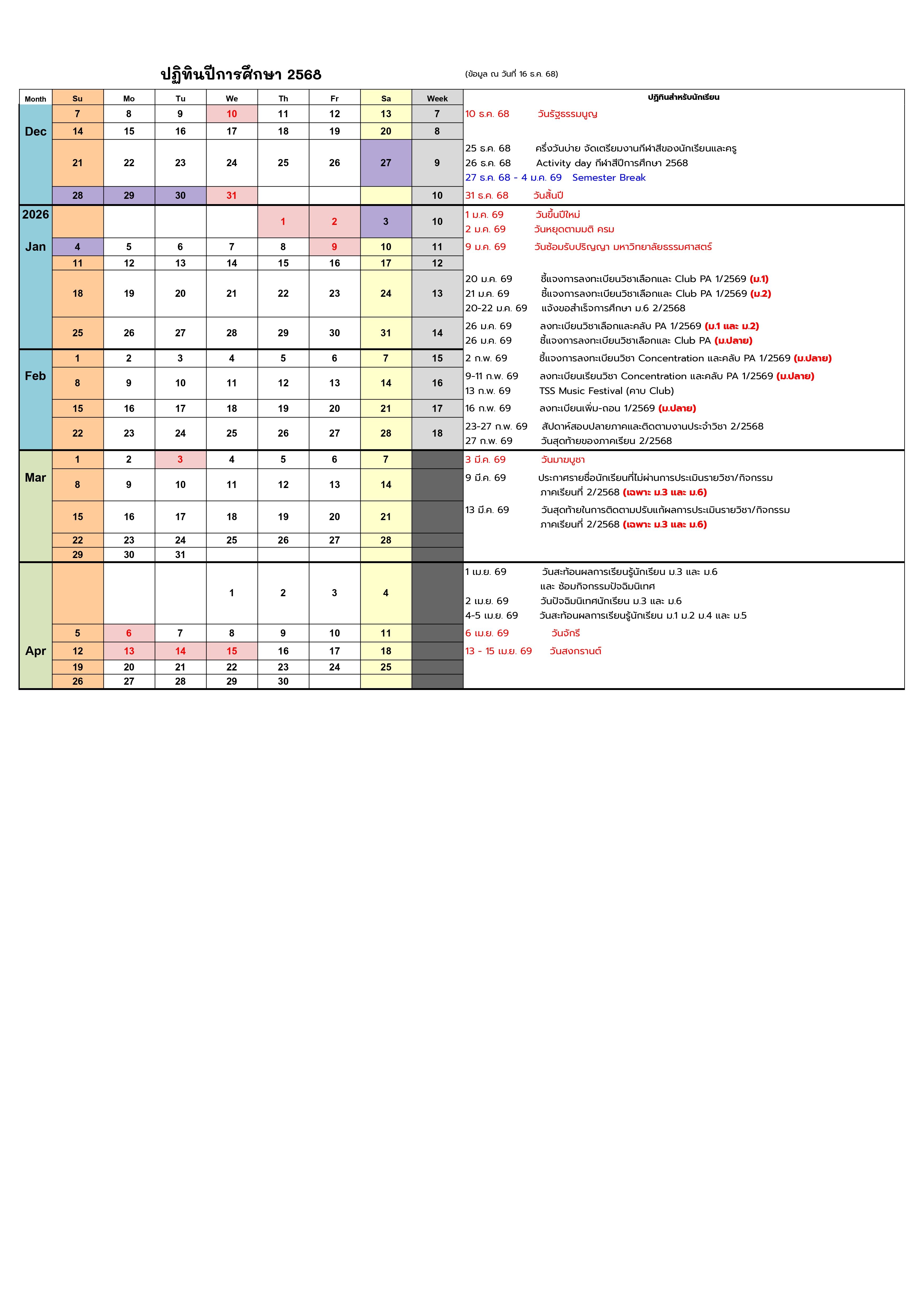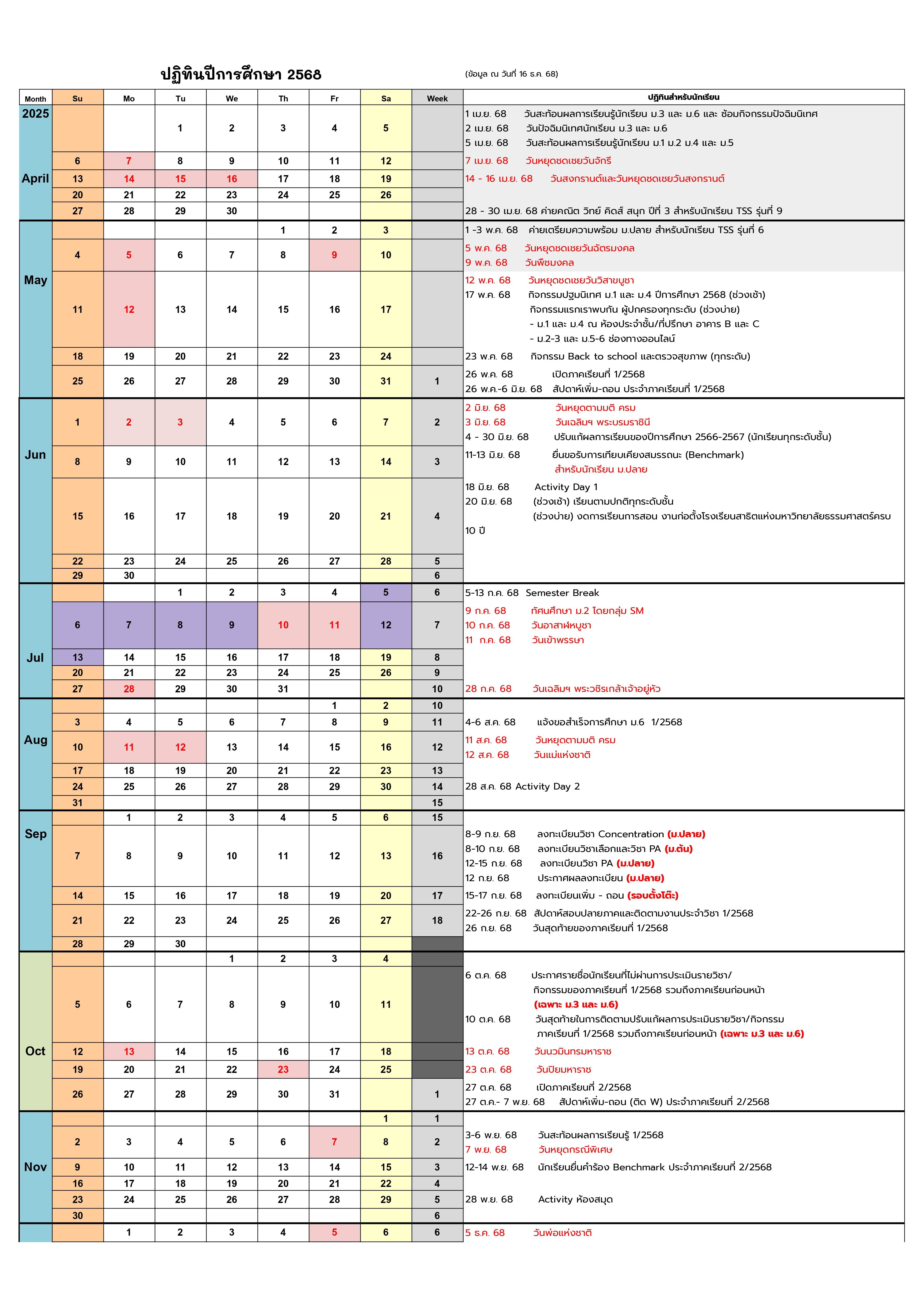 ดาวน์โหลดปฏิทินการศึกษา 2568